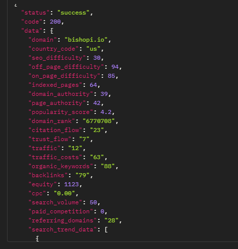 An API-first platforms like Bishopi SEO API stand out. Built for enterprise search data workflows, Bishopi provides high-throughput access to structured keyword data, real-time SERP signals, and competitive visibility metrics.